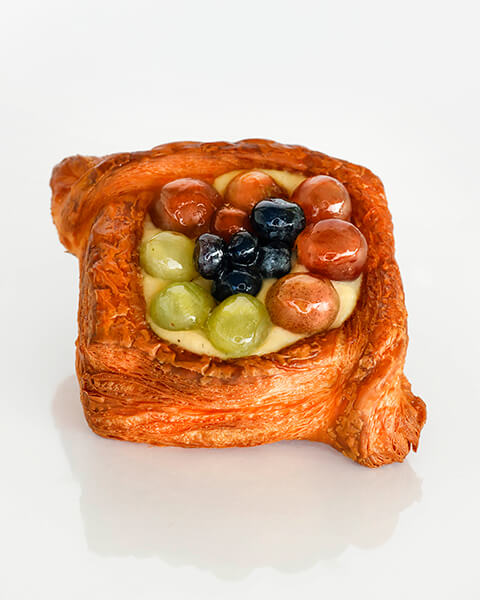 Összetevők: Búzaliszt, víz, tehéntej, cukor, vadkovász, vaj, élesztő, só, frost (aszkorbinsav),tojás. Töltelék: szezonális friss gyümölcs, Tehéntej, Cukor,, tojássárgája, kukoricakeményítő, vaj, vanília, só