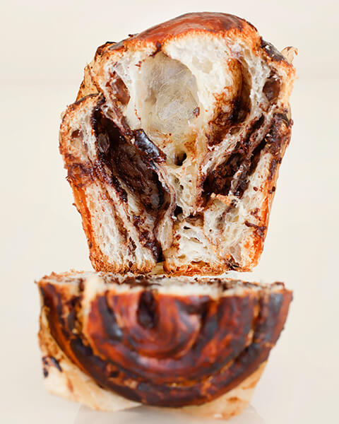 Összetevők: Búzaliszt, víz, tehéntej, cukor, vadkovász, vaj, élesztő, só, frost (aszkorbinsav), tojás. Töltelék: Víz, cukor,kakaópor, kukorica keményítő, tejpor, aromák, só, rum, Belga csoki rúd (cukor, kakaómassza, kakaóvaj,szójalecitin, vanília aroma)